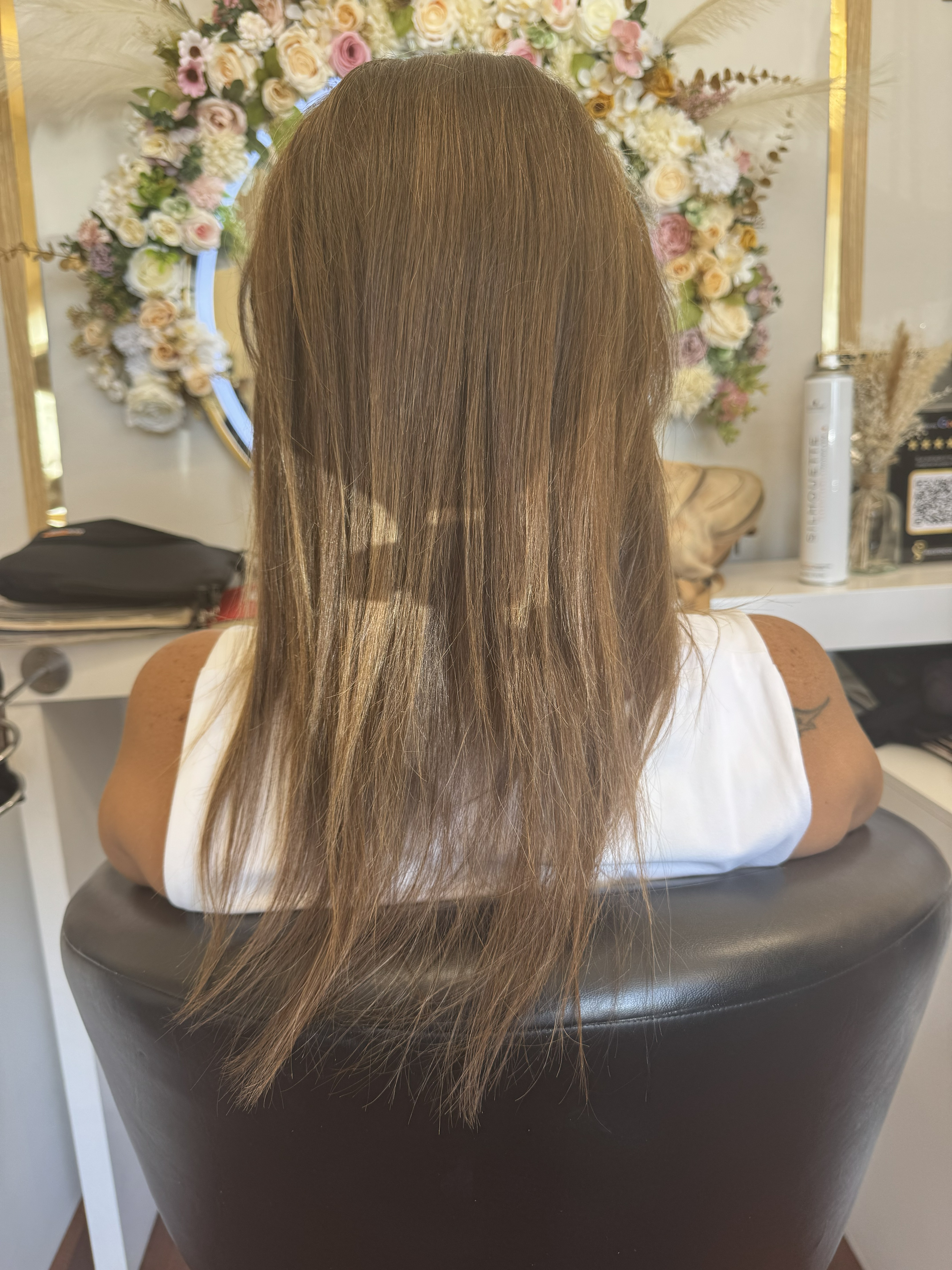Trabalhamos exclusivamente com cabelos humanos de proveniência premium e técnicas de aplicação que preservam a saúde dos seus fios naturais. Cada alongamento é um projeto único, desenhado para harmonizar com o seu tom, textura e rotina diária.
