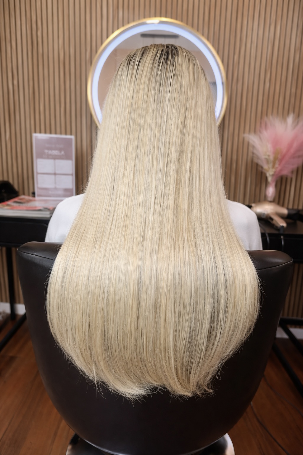 Trabalhamos exclusivamente com cabelos humanos de proveniência premium e técnicas de aplicação que preservam a saúde dos seus fios naturais. Cada alongamento é um projeto único, desenhado para harmonizar com o seu tom, textura e rotina diária.